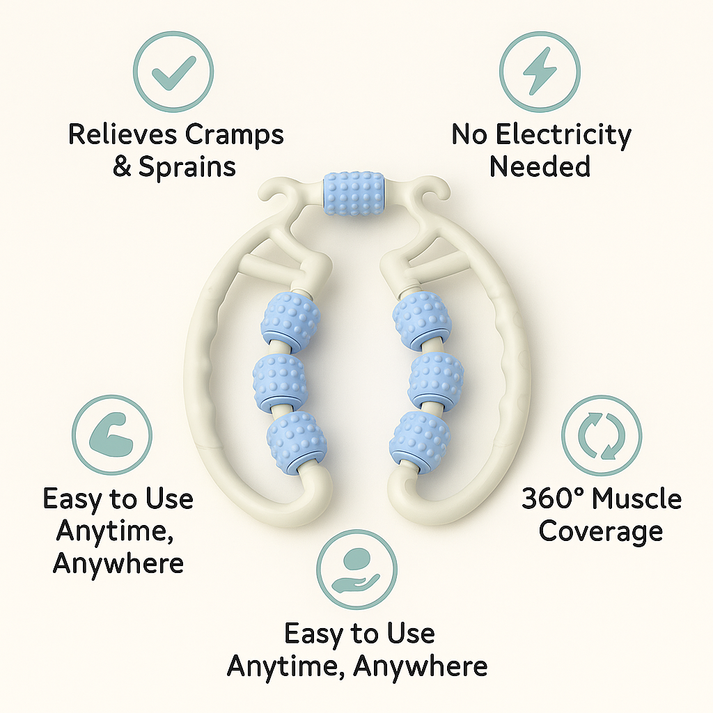 • Targeted Relief: Massage hard-to-reach areas like neck, arms, legs, and calves to ease muscle knots and tension.